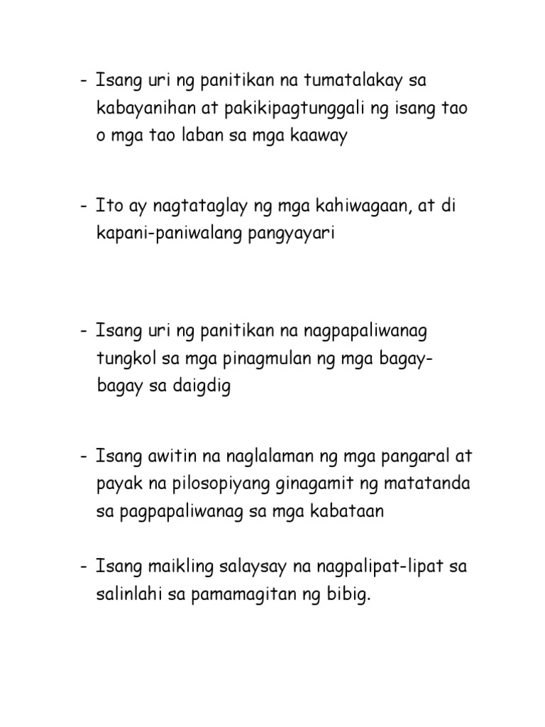 Isang Uri Ng Panitikan Na Tumatalakay Sa Kabayanihan At Pakikipagtunggali Ng Isang Tao O Mga Tao Laban Sa Mga Kaaway Pdf