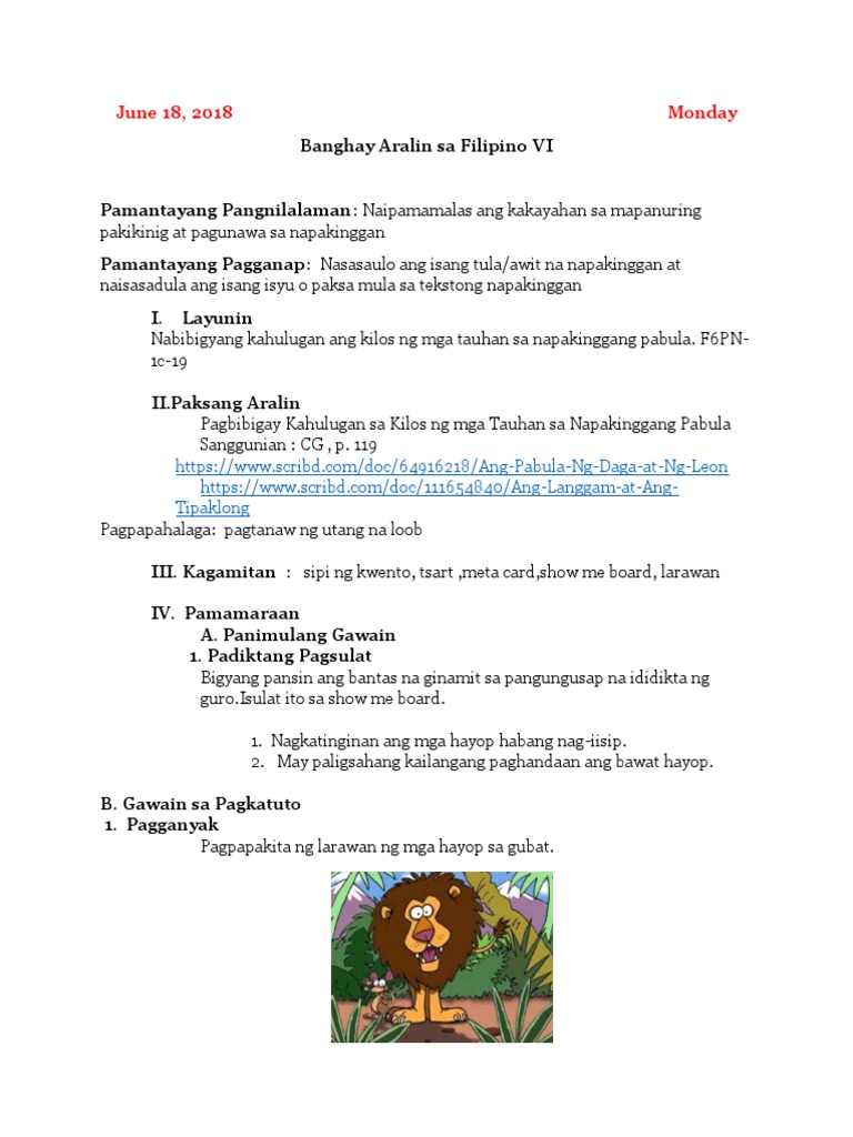 Banghay Aralin sa Filipino. By depedteachersclub on January 16 2020 COT Lesson Plans. The story is for personal and classroom use only.