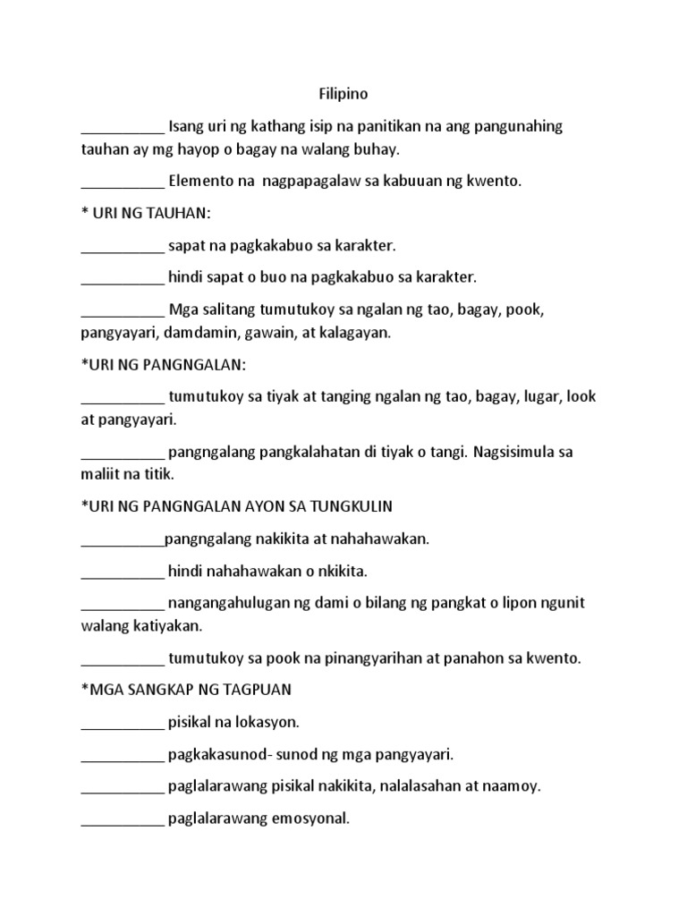 1 see answer xsgdmsn xsgdmsn answer. The worksheets in the two pdf files below ask the child to identify the object animal or person being described. Ang Mga Mahahalagang Bagay sa Buhay Kuwentong May Aral Jim Lloyd 737 PM May isang professor sa pilosopiya na nakatayo sa harap ng kanyang klase at.